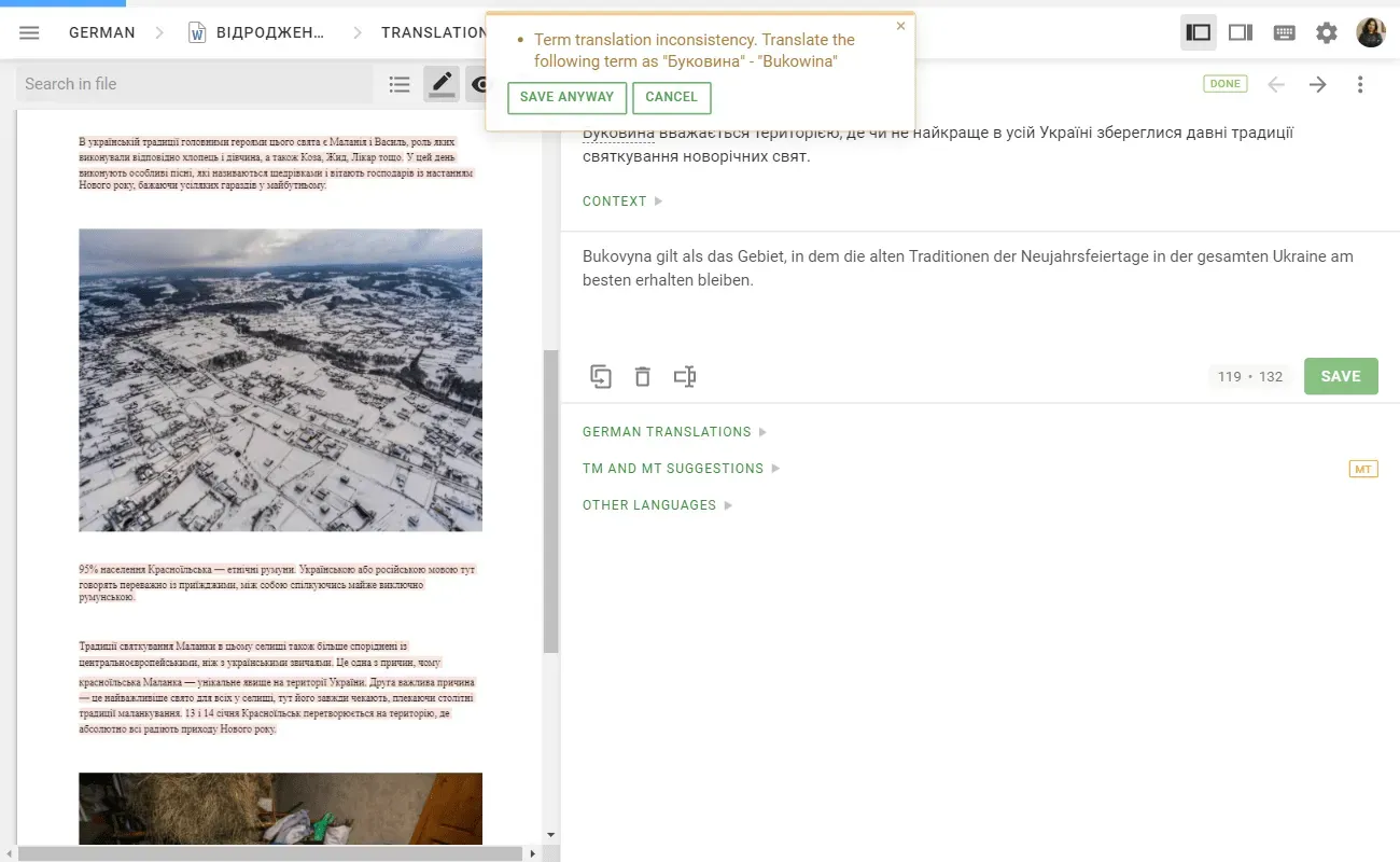Consistent terminology QA check is now also available for Japanese, Korean, Chinese Simplified, and Turkish languages.