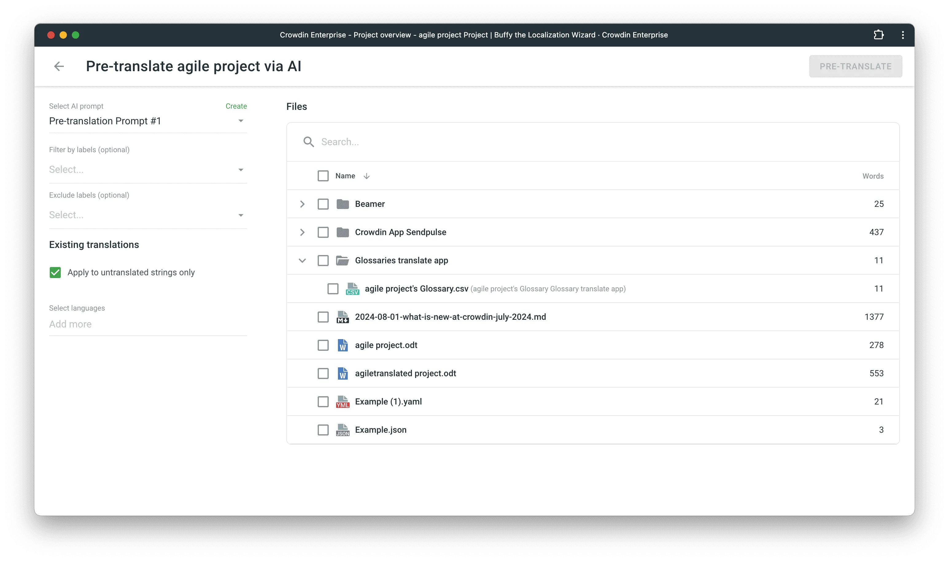 Improved UX for the Pre-Translate Dialog at Crowdin Enterprise